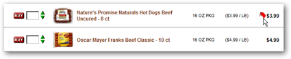 The little red flag on the right means that the grocery item is on sale.